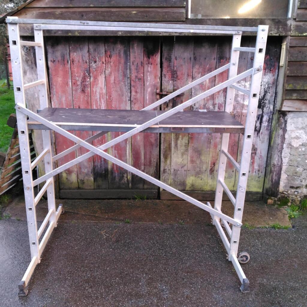 Échafaudage roulant avec trappe, plateau d'1,5 m par 50cm, hauteur possible de 25cm a 1,4m