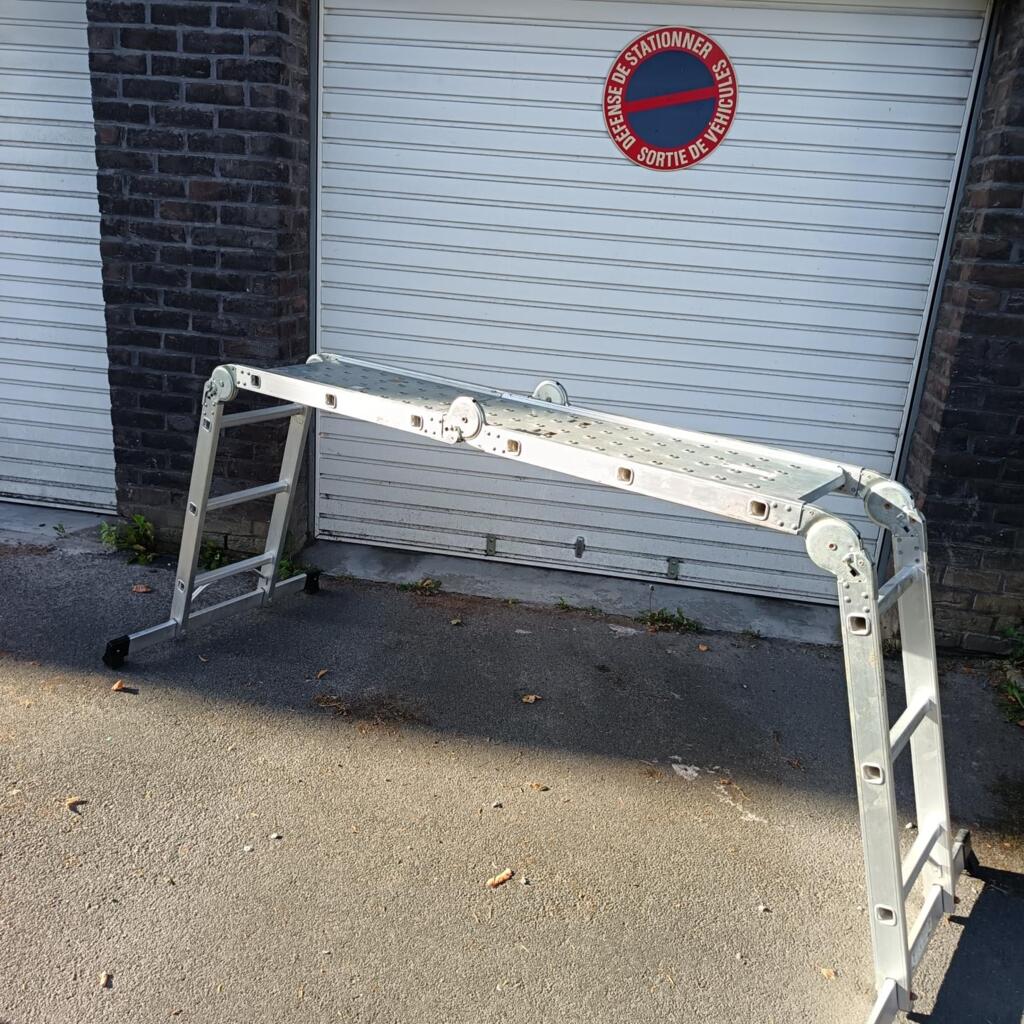 Echelle pliante articulé, jusqu'à 6 position de travail différentes, jusqu'à 4m50 déployé, plateforme pour fonction échafaudage fourni