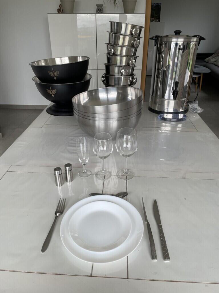 A louer, service vaisselle, couverts jusqu’à 150 personnes (possible plus sur demande)