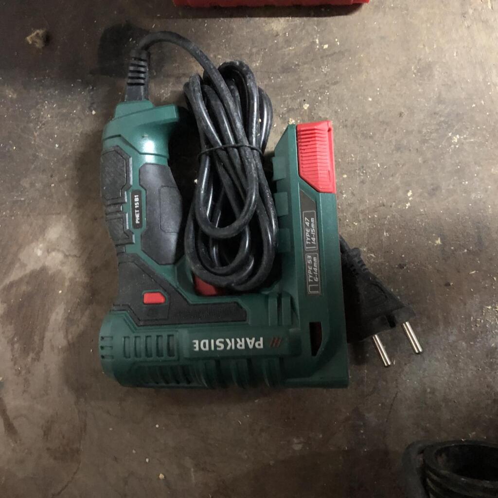 Agrafeuse électrique de la marque Parkside. Idéal pour tous travaux de bricolage. On peut y mettre des agrafes et des clous.