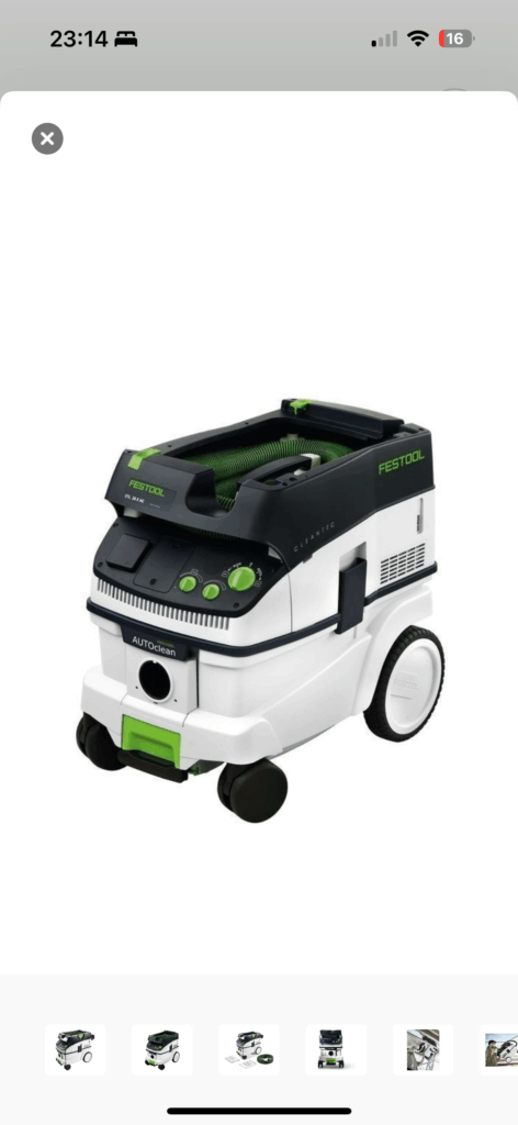 Aspirateur de Chantier, Festool, CTL, 26, avec mode manuel et automatique avec prise 220v auxiliaire sur l’aspirateur