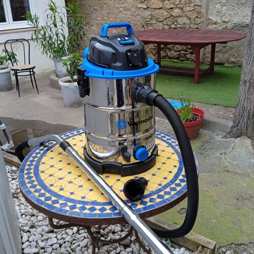 Aspirateur acheté le 24/04/25 pour vidanger le fond de ma piscine hors sol donc pas d'évacuation au sol ,cuve de trente litres ,évacuation par bouchon en bas de celle-ci,fourni avec petite brosse ronde et balai si besoin .Utilisé une fois donc neuf ,je le loue histoire peu cher pour dépanner car location par professionnel hors de pris