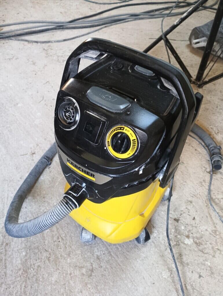 Aspirateur eau et poussière Karcher, puissant. Fonctionne très bien avec des outils ( ponceuse girafe)