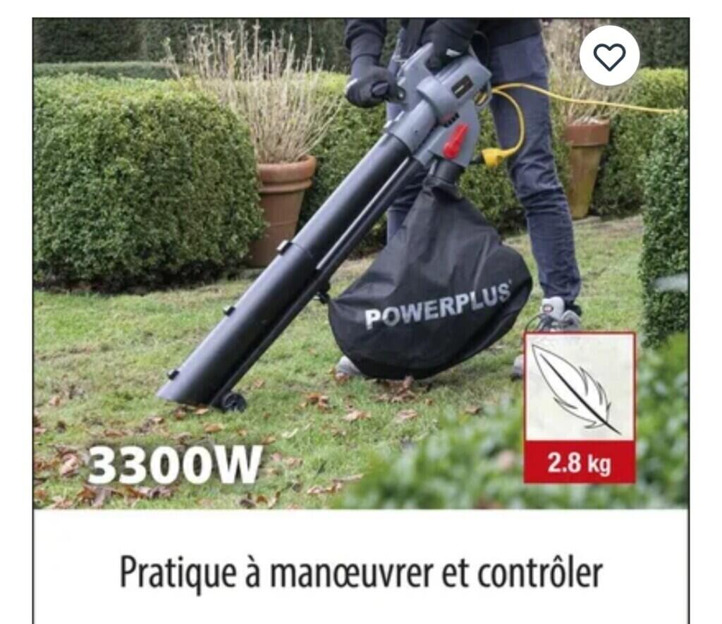Souffleur, aspirateur, broyeur de feuille , à brancher sur une prise, électrique. De la marque powerplus de puissance de 3300w, d'une capacité du sac de 45l.