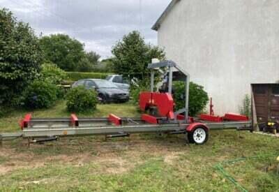 Banc de scie / scierie mobile à louer pour débit de vos grumes et troncs en planche. Idéal auto construction. Machine facile à prendre en main. Possibilité d’avoir un treuil ainsi que des rampes pour charger les troncs sur la machine. Consommables disponibles en supplément (lames, galets de guide).