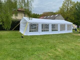 Tente de réception 5×10 prévue pour 50 personnes en repas. Le tarif de 150€ est pour le week-end complet (souvent du vendredi au lundi) , montage et démontage inclus. Possibilité de fournir l’éclairage pour un supplément de 10€ ainsi que tables chaise mange-debout sono ainsi qu’un kit paella 50 personnes. Ne pas hésitez à demander des renseignements