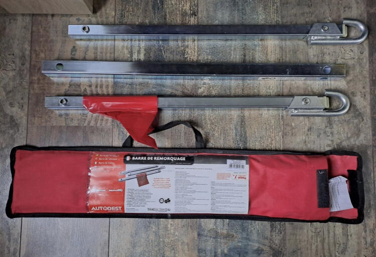 Barre de remorquage avec tête d’attelage (manquant sur la photo) facile à monter et à démonter.