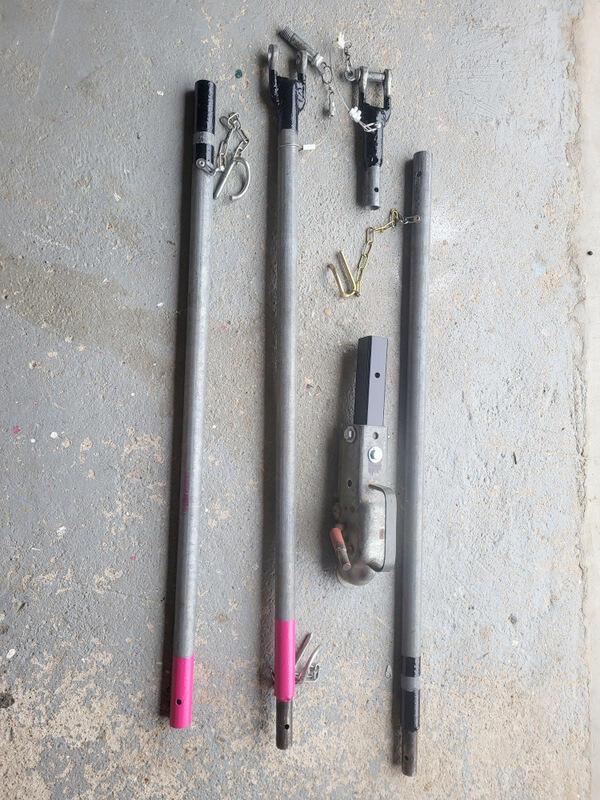 location de barre de remorquage professionnelle utilisable en 2 mètres ou 3 mètres . accrochage avec manilles ou mixte : manille / crochet attelage