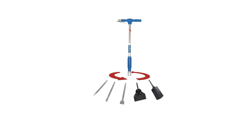 Bêche pneumatique outil universel 5 en 1. Travail sans fatigue, travail plus rapide comparé à une bêche traditionnelle, utilisation universelle au jardin et dans la maison, système de changement rapide et simple des outils interchangeables.- Poignée en caoutchouc qui amortit les vibrations. Système de changement rapide et simple des outils interchangeables. Pression de travail 6,3 bar. Fer de bêche forgé.