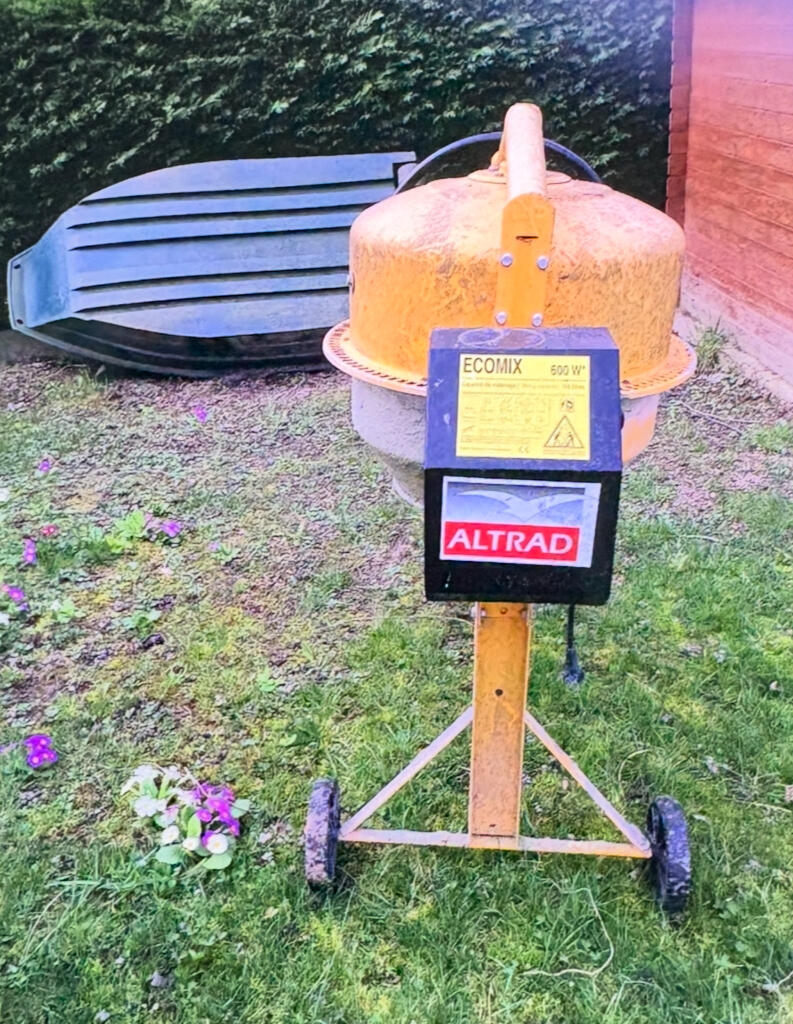 Location d'une bétonnière électrique ECOMIX de marque ALTRAD de L, Watt soit une capacité de 3 brouettes.