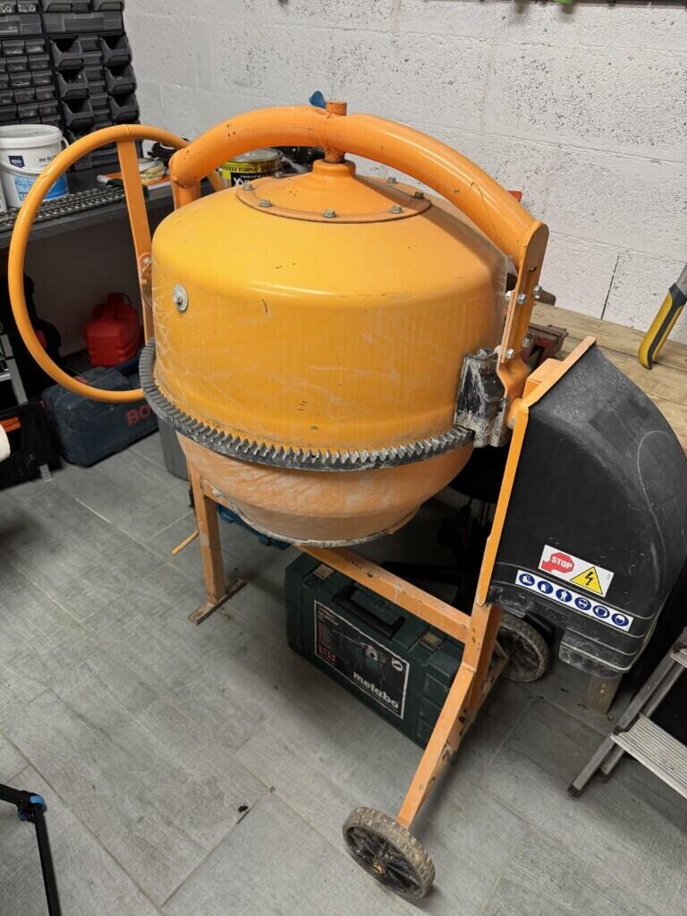 Bétonnière électrique Betomix de 110 litres. Très silencieuse et compacte. Outil idéal pour vos travaux (béton, mortier et enduit).