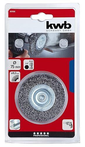Brosse à disque grossière, fil d’acier HSS extra épais, Ø 75 mm pour le métal et la pierre, brosse métallique pour perceuse, y compris tige hexagonale E6.3, pour dérouiller, décalaminer