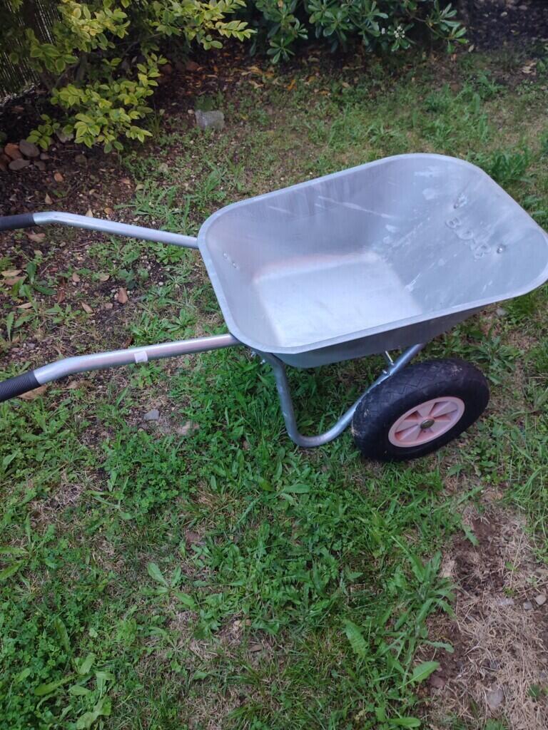 Brouette de jardin, stable et pratique avec ses deux roue.