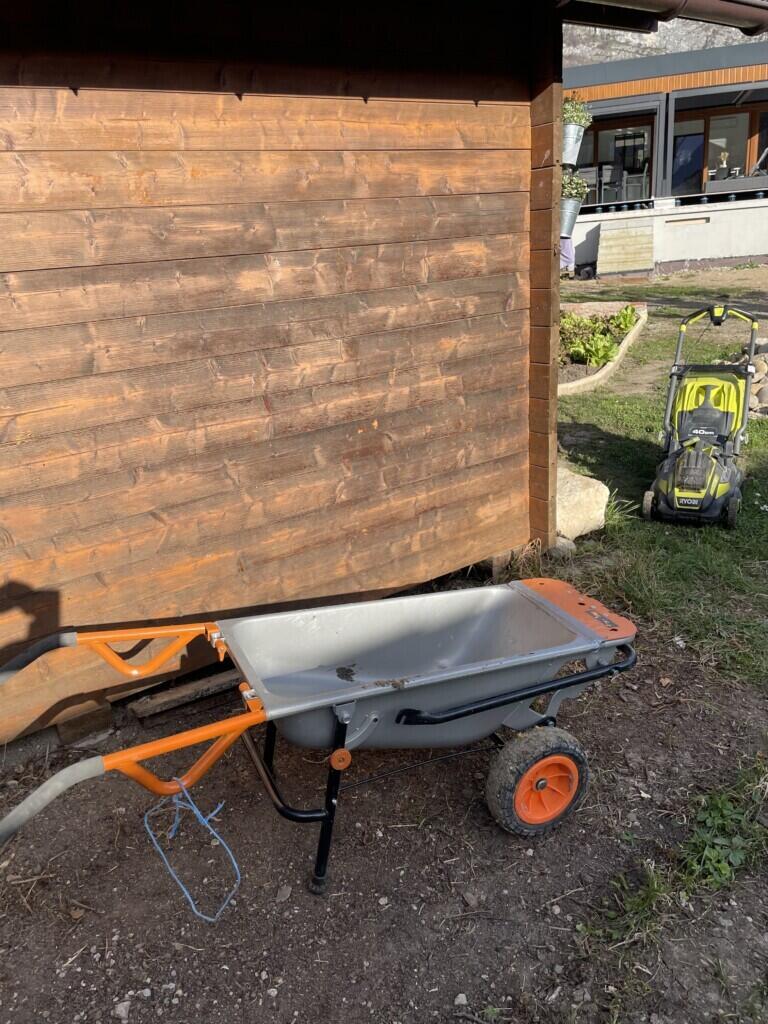 Brouette Neuve, super pratique et ne fait pas mal au dos.