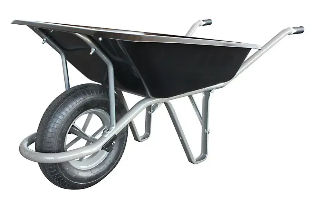 Brouette renforcée avec roue gonflable pour plus de confort et de maniabilité. Idéale pour ramasser terre, gravats, déchets verts, … Possibilité de fournir des pelles, bêches, pioches et râteaux en supplément.