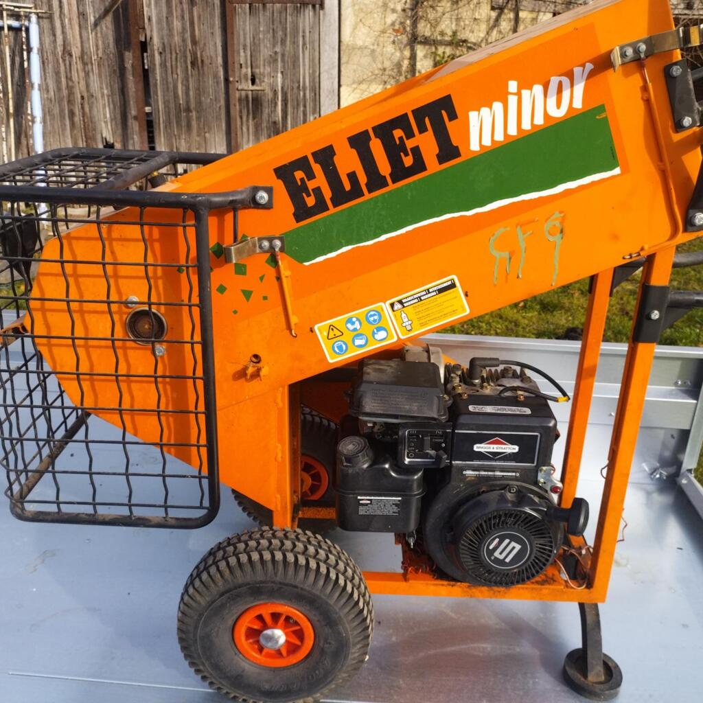 Broyeur végétaux "Eliet Minor" fonctionnement par moteur thermique Honda 5CV, broyage jusqu'à 45mm de diametre, marque professionnel