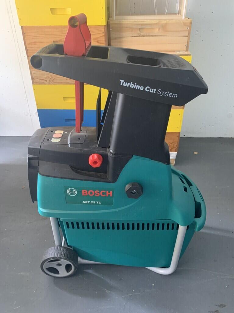 Loue broyeur électrique 2500W de jardin BOSCH ATX 25 TC. Complément idéal d'une taille haie, d’arbuste ou de branches.