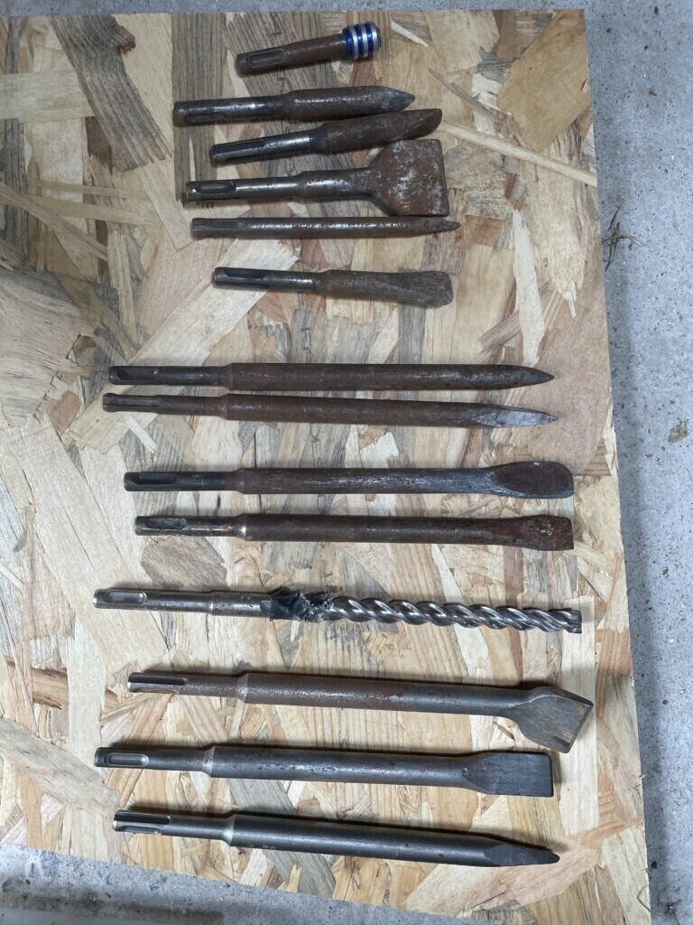 Lot de burins SDS plus ou moins en bon état avec pour perforateur. (Annonce disponible également en location).
