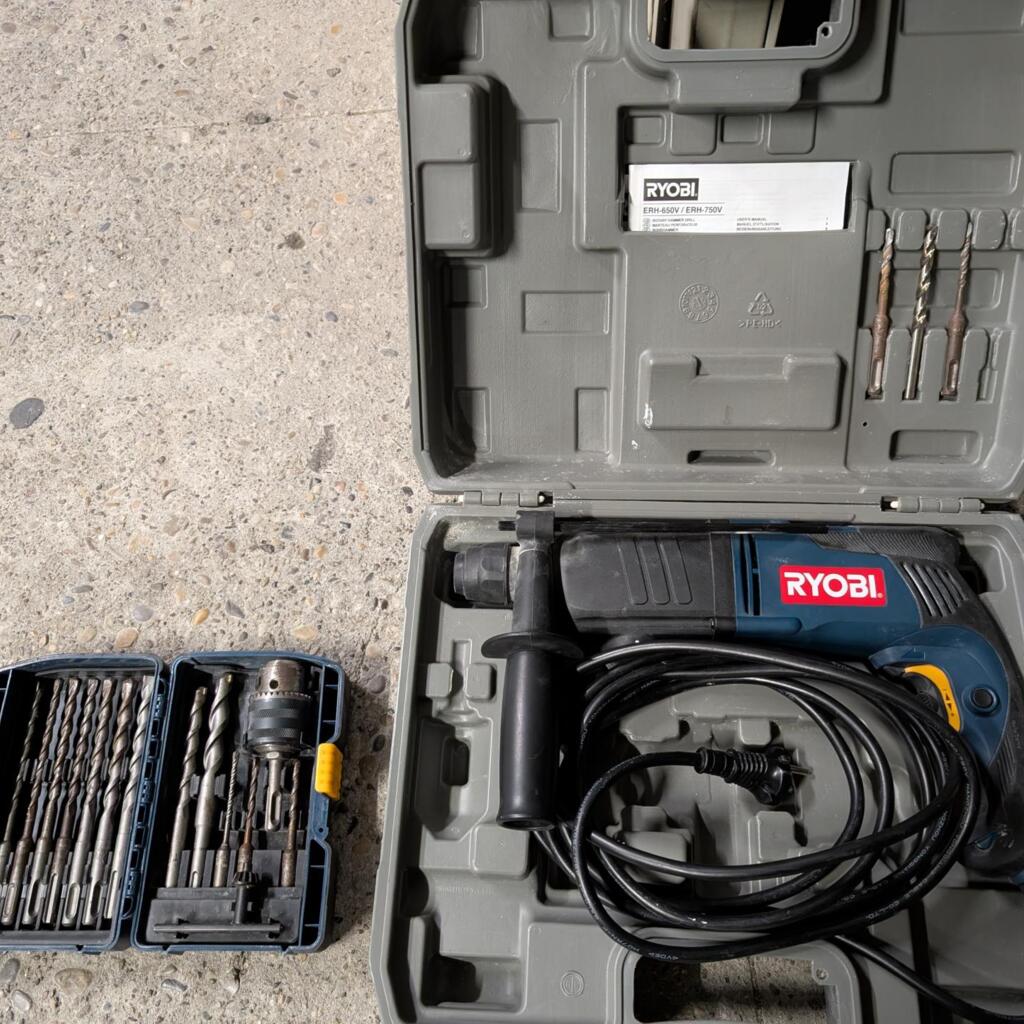 Loue un perforateur Ryobi W filaire avec mandrin SDS+ + accessoires + mèches béton différents diamètres.