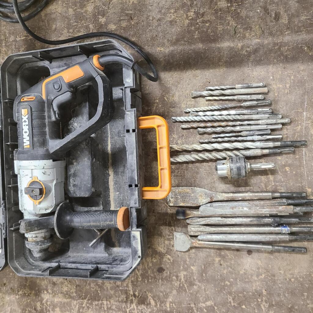 Perforateurvisseuse burineur. Puissance de W. 1 Mandrin, 12 foret à béton de 5 a 16 mm et 8 Burin fournie avec dans la boite