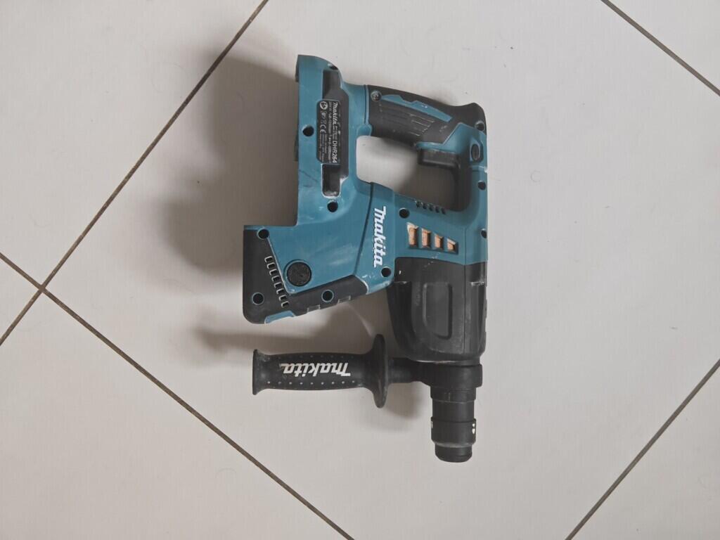 Perforateur burineur sans fil Makita 2 fois 18V. Fourni avec chargeur, batterie et forêts.