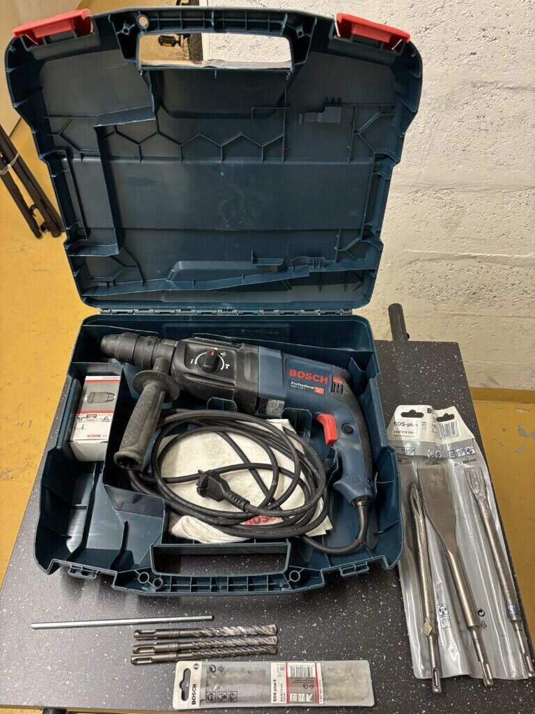 Loué avec 2 mandrin (Sds + et serrage rapide), 3 forêt Sds de 6, 8 et 10mm ainsi qu’un lot de 3 burins.