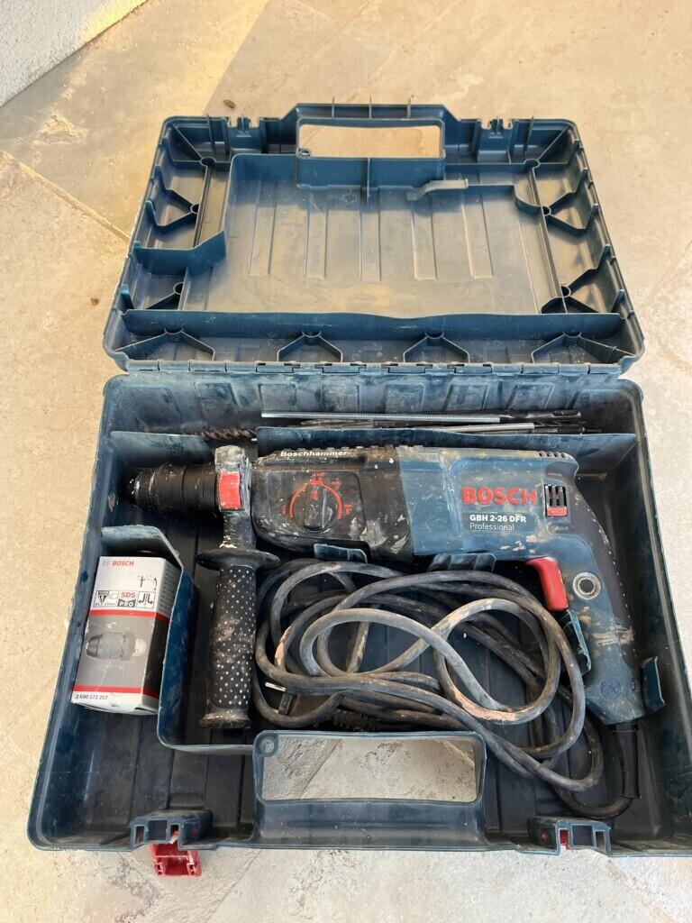 Perforateur Bosch pro avec forêt béton, pic et plat. Idéal pour décrouter, démolir du béton, faire des trous dans du béton armé.