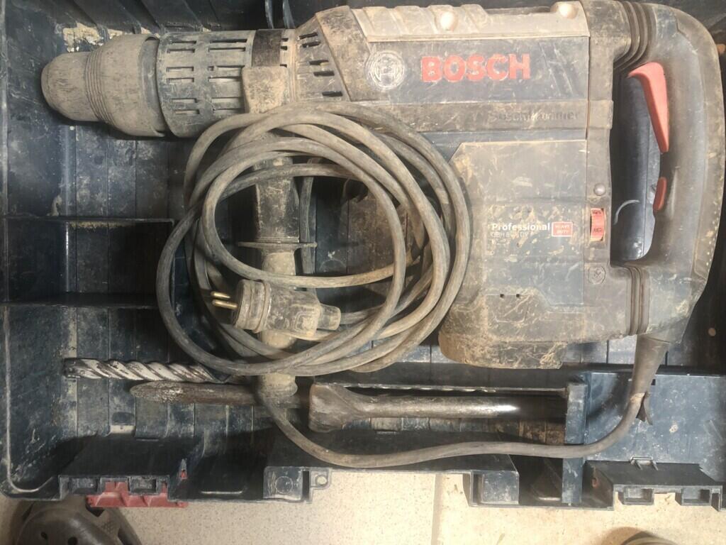 avec 3 burins( dont 1 large plat) et 1 mèche à béton diamètre 20 longueur 40 cm de perçage