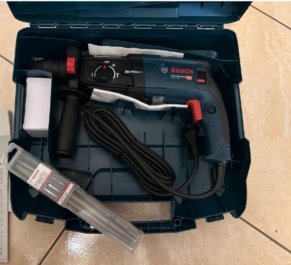 Burineur/ perforateur marque bosch gamme professionnelle. Loué avec un burineur Plat et un burineur type pointeau. Il dispose de son mandrin SDS et du mandrin classique, d'une poignée additionnel et d'un guide de profondeur.