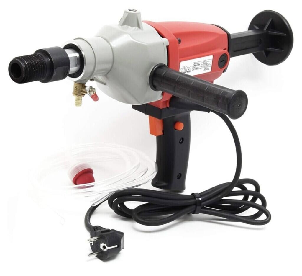 Carotteuse électrique portable avec système de refroidissement à eau avec forêt diamant de 102 mm de diamètre + forêt diamant de 44 mm de diamètre.