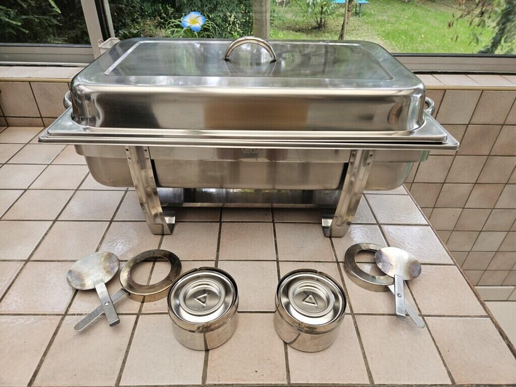 1 chafing dish, pour maintenir au chaud les aliments et les plats, lors d’événements comme les mariages, anniversaires, réceptions, etc.