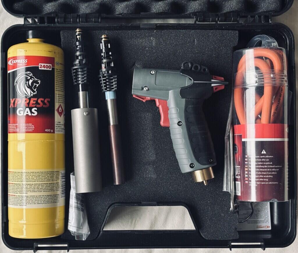 => Inclus : Lance chalumeau, lance air chaud, 1 bouteille de Gaz propylène + tuyaux + Attache ceinture