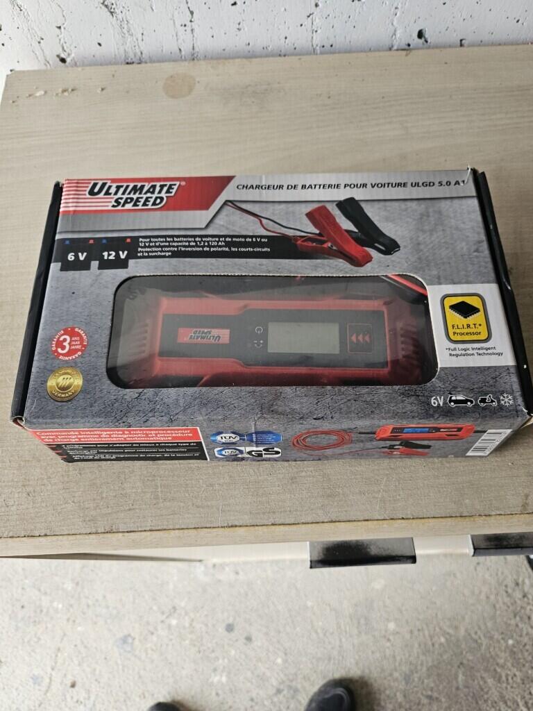 Chargeur de batterie de voiture, ou de moto en très bonne état avec indicateur digital.