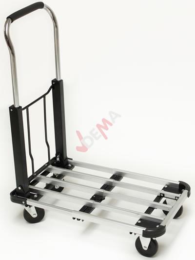 Son pliage est très simple, surface de charge extensible, 4 roues dont 2 fixes et 2 mobiles, poignée en mousse.