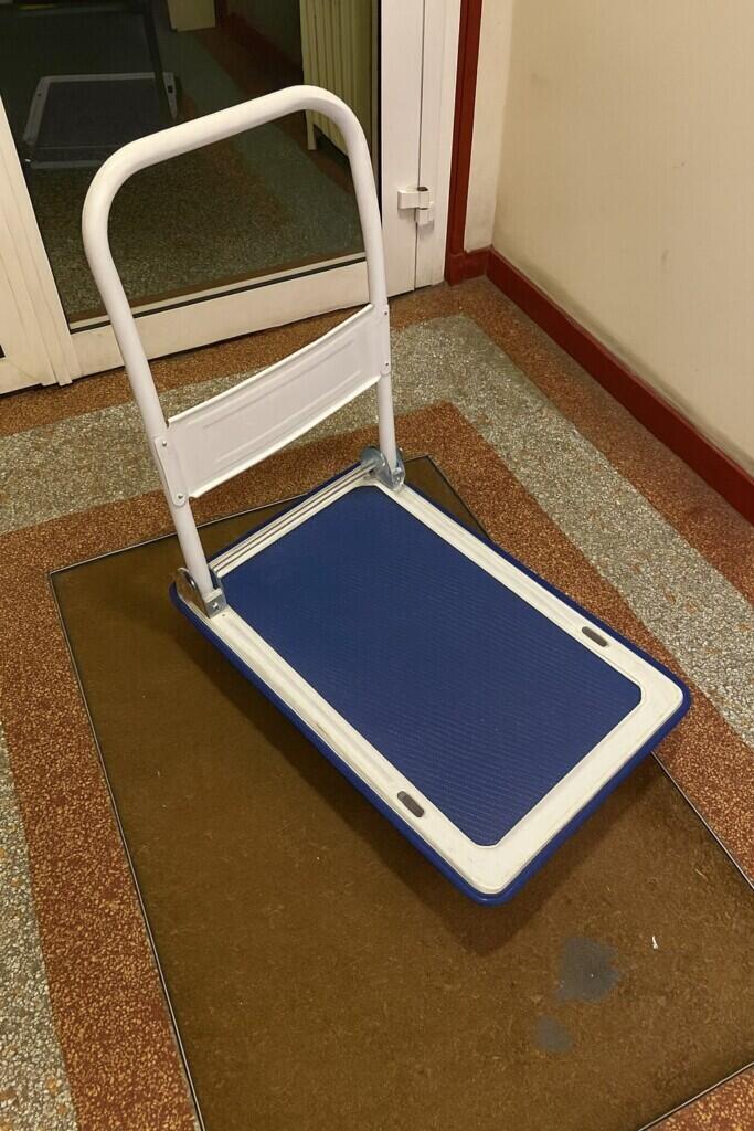 Bonjour, je mets à disposition ce chariot de transport pour vous accompagner dans vos déplacements de charges lourdes ! Il supporte jusqu’à 300 kg.