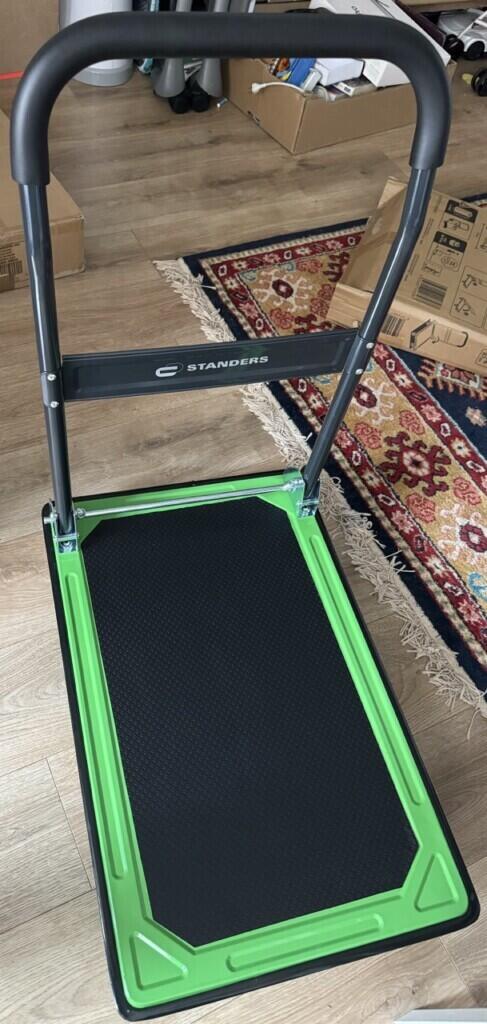 Chariot pliable Standers en excellent état, presque neuf, idéal pour les déménagements et capable de supporter jusqu’à 150 kg. Grâce à ses nombreux points d’attache sur les côtés, il permet de sécuriser facilement votre chargement avec des câbles.