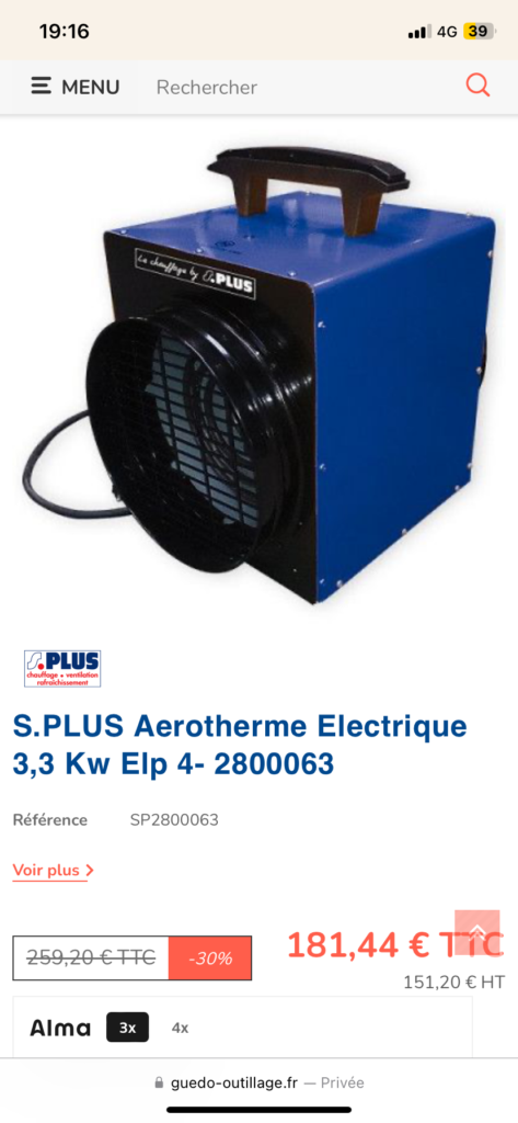 - Chauffage de chantier,