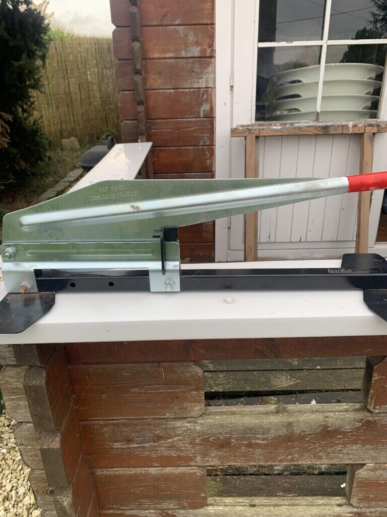 Cisaille ou guillotine ou presse à lames de parquet statufié