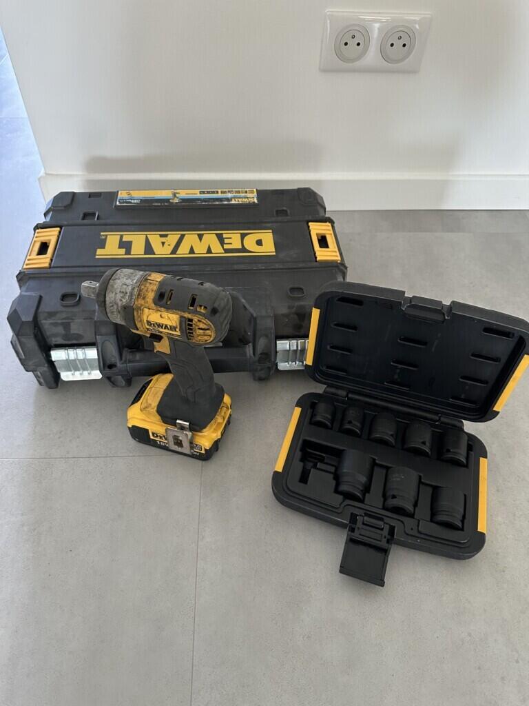 Clé à choc Dewalt sur batterie avec sa mallette de douille à choc