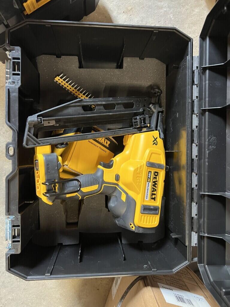 Cloueur de finition, avec ça boîte et deux batteries. Supplément batteries possible.