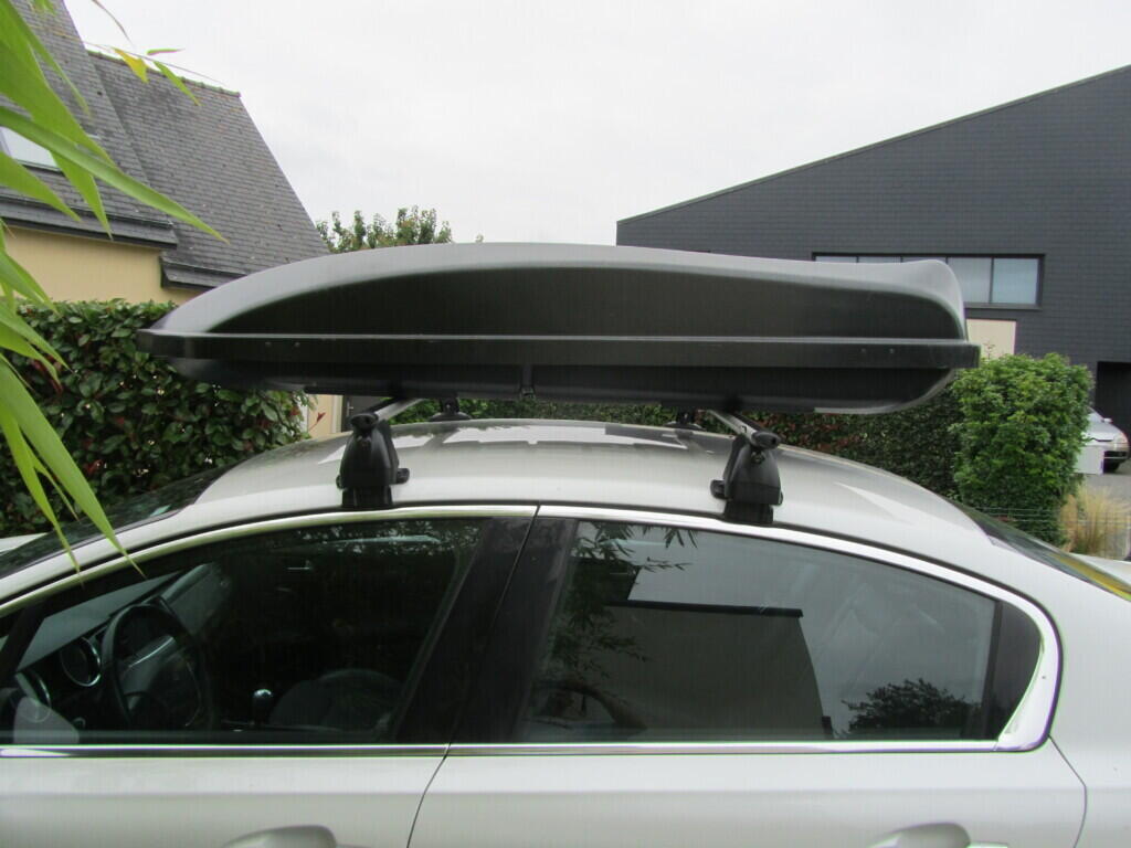 Coffre de toit avec fermeture centralisée et sécurisé. Design moderne grâce son aspect profile et sa couleur carbone.