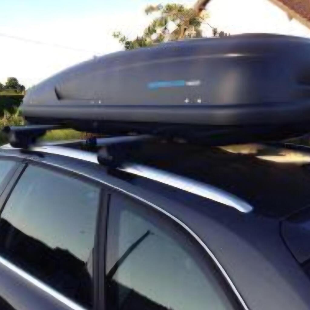 Coffre de toit Bermude dual side ( s’ouvre des 2 côtés) avec serrure et système de fixations sur barres de toit ultra rapide, fiable et sans outil.