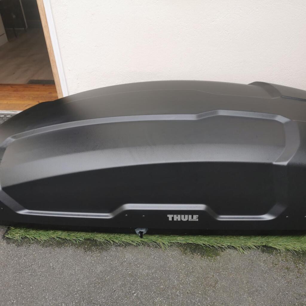 Coffre de toit de la marque Thule force XT longueur largeur 75 hauteur 42 idéal pour des skis de maximum 1 m 62 avec les accroches qui intérieures les lanières fermeture à clé noir mat..