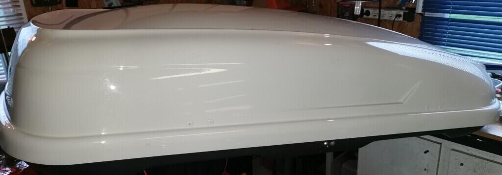 Bonjour coffre de toit Bermude 930 de 410L peint en blanc, longueur 172cm, largeur 73cm et hauteur environ 40cm
