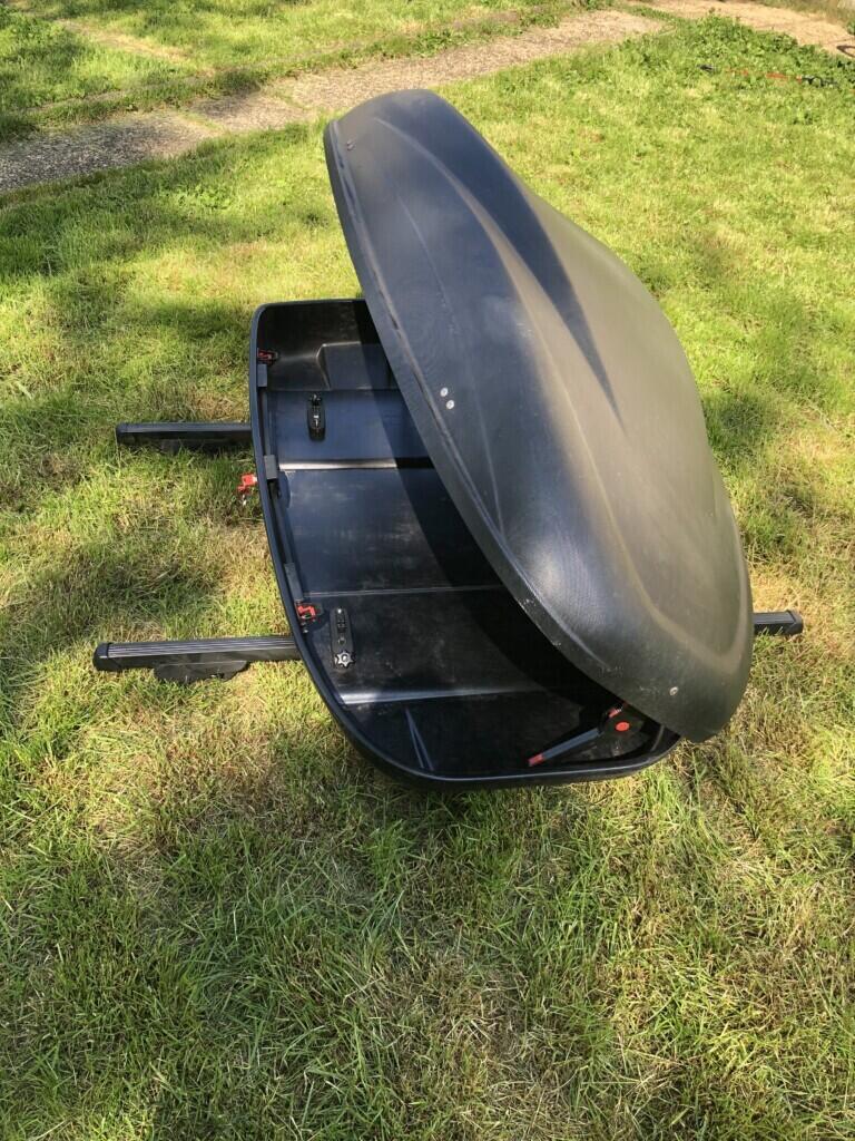 Loue Coffre de toit 400 litres / 144×95 et barres longitudinales (ajustables)