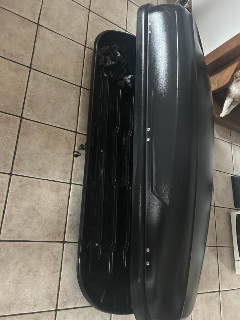 Coffre toit 450L. Ouverture latérale gauche ou droite. Barres de toit disponible.( Pour citadine style C4 ou d’autres pour familiale )