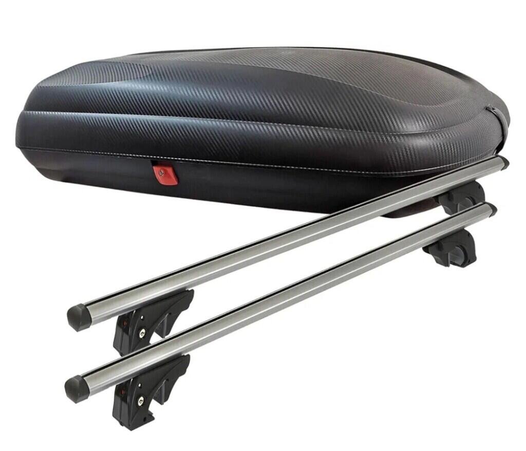 Coffre de toit de 320 l, Dimensions (L x l x h) : 1200 x 58 x 28 mm, aspect carbone + 2 barres de toit en aluminium, longueur : 1200 mm