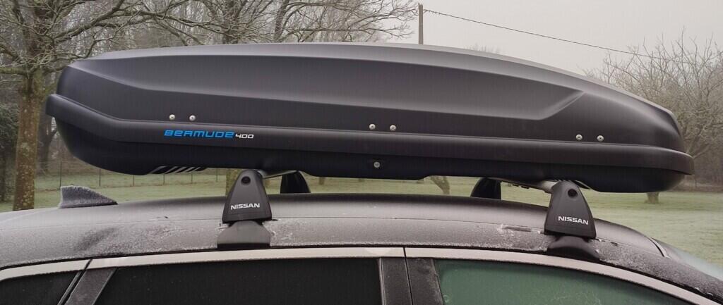 Coffre de toit NORAUTO Bermude 400 (noir) / Volume utile 421 L / Charge maximale supportée 75 kg / Longueur 192cm x Largeur 82cm x Hauteur 42cm / Sens d'ouverture gauche et droite / Poids à vide 17.5 kg / Ecartement mini barres de toit 62 / Ecartement maxi barres de toit 93 / Longueur maxi des skis 175cm / Nombre maximal de skis 4 / Nombre maximal de snow 3 / Installation sans outils / Verrouillage du coffre de toit serrure centralisée sécurisée / Matériau abs