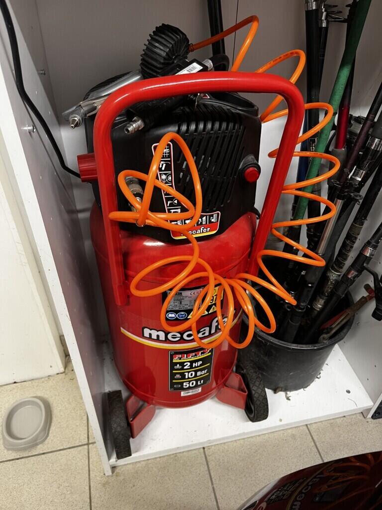 Compresseur de marque Mecafer, capacité de 50litre et pression de 10 bar.