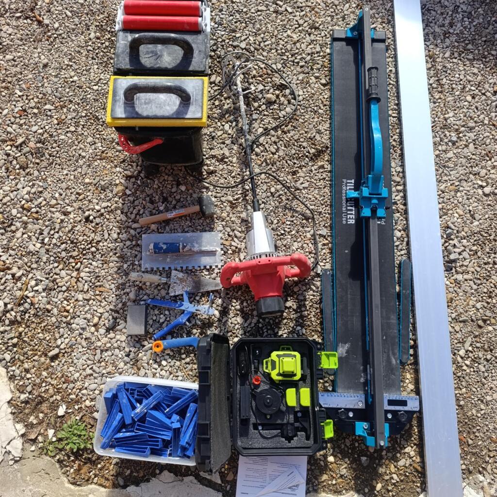 Je peux louer le pack complet pour faire votre carrelage, laser, malaxer, outillage pour joints, règle de 2M+ accessoires pour 5€/jours
